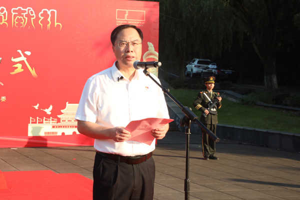 赵东福发表讲话。他说,新中国成立72年来,中国共产党领导和团结全国各族人民,砥砺奋进、锐意进取,不断开辟中国特色社会主义发展新境界,创造了一个又一个彪炳史册的人间奇迹。他指出,今年是中国共产党的百年华诞,我国顺利实现第一个百年奋斗目标,正向着第二个百年奋斗目标迈进。立足新起点,面对世界百年未有之大变局,肩负党和国家赋予的新期待新使命,我们要不断从百年党史中汲取智慧和力量,传承伟大建党精神,牢记习近平总书记对青年的殷切期望,厚植家国情怀,勇挑时代重任,立志把学术论文写在祖国大地上,把青春汗水挥洒在广袤天地中,努力在实现中华民族伟大复兴的生动实践中放飞青春梦想!