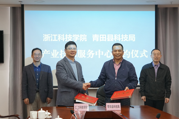 理学院相关负责人代表学校与青田县科技局签订“青田县鞋产业技术服务中心”合作协议,根据协议,双方将以理学院大数据产业学为主体,结合校相关优势学科,扎实推进服务青田建设。