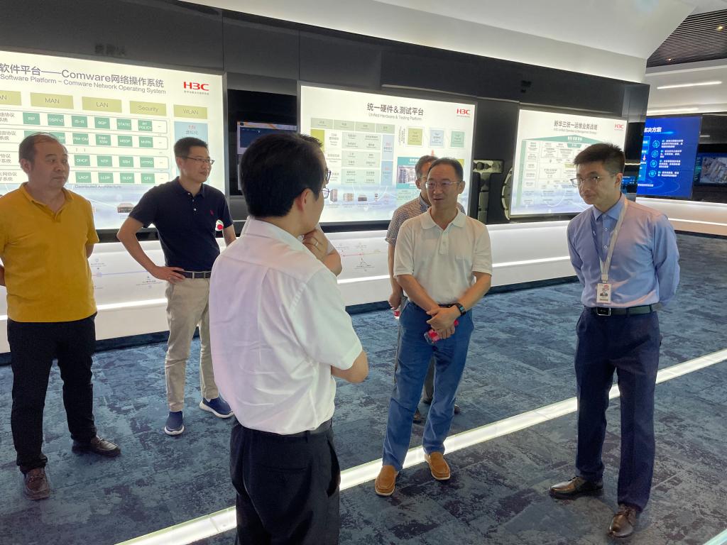 座谈会前,冯军一行参观了新华三集团总部科技展厅,实地参观考察新华三萧山未来工程现场,调研新华三集团在5G、AI、工业互联网等前沿数字化技术在工厂的创新应用。(科研处 社会合作办公室 沙如意)