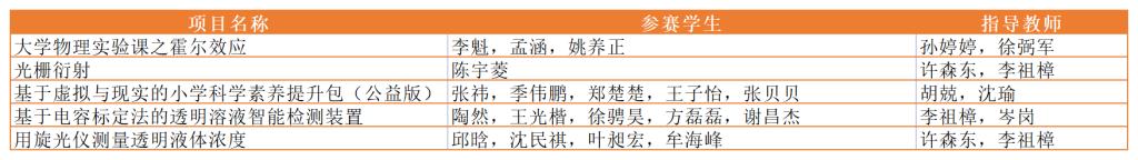 浙江省第十三届大学生物理实验与科技创新竞赛一等奖获奖项目及人员