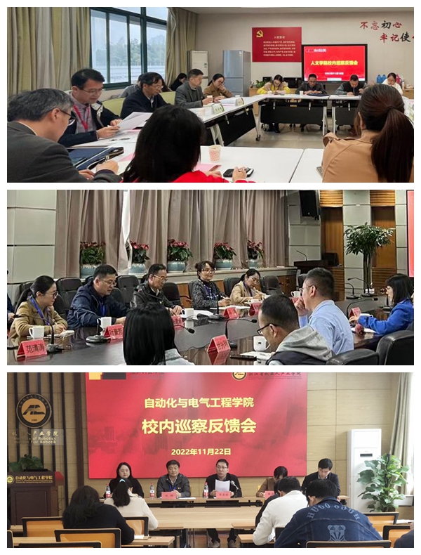 近日,按照学校党委巡察工作统一部署,学校党委2022年度校内巡察反馈工作已全部完成。校党委书记赵东福等校领导出席联系学院的反馈会并对做好后续巡察整改提出要求。四个巡察组分别向自动化与电气工程学院党委、信息与电子工程学院党委、艺术设计与服装学院党委、人文学院党委反馈巡察报告,提出整改意见建议。