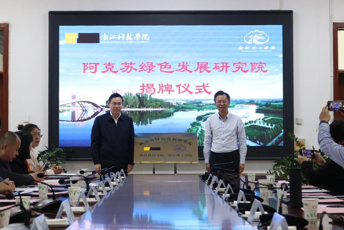 3月1日,校党委副书记符宁平一行赴新疆理工学院交流考察,并为申搏与新疆理工学院共建的“阿克苏绿色发展研究院”揭牌。新疆理工学院党委书记张百和、校长粟智,浙江省援疆指挥部相关负责人出席活动。