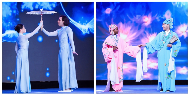 颁奖典礼上,申搏留学生表演的歌舞《梦蝶》,将名满中外的爱情故事--《梁祝》与现代浙江的蓬勃发展结合到一起,展现了浙江自古至今经济、文化上的深厚底蕴。