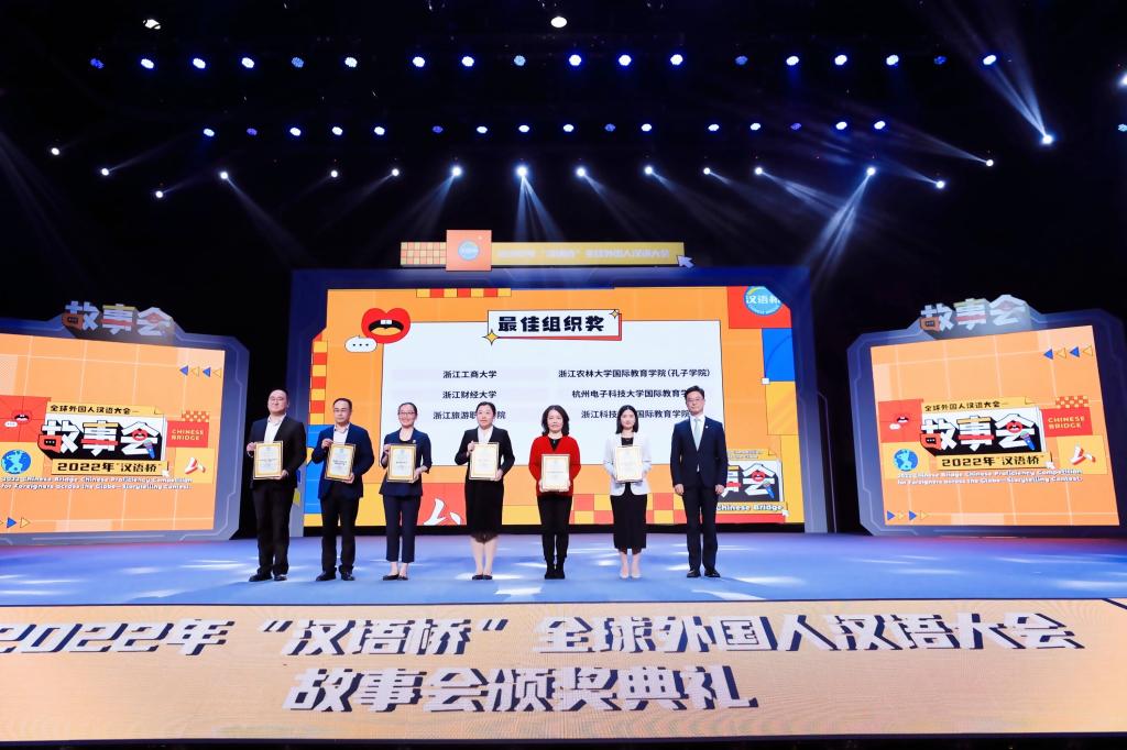 据了解,2022年“汉语桥”全球外国人汉语大会——故事会由教育部中外语言交流合作中心主办,杭州文化广播电视集团承办,旨在为世界各国中文学习者提供一个展示中文能力的舞台。来自世界各国的参赛选手、指导老师、相关领域专家学者通过现场颁奖典礼和线上元宇宙颁奖典礼共同参加了颁奖活动。