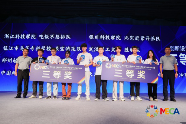 近日,第16届“三菱电机杯”全国大学生电气与自动化大赛在苏州举行,申搏机制专业本科生徐辉、许晨、研究生李豪楠组成的“基于无线连接器的机械臂抓手快捷更换生产应用”团队(指导老师:吴瑞明)以省赛一等奖的成绩进入决赛,获得全国三等奖。