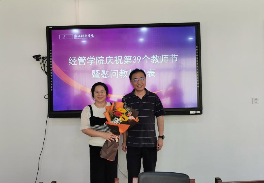 教师代表、安吉校区龚金炎分享了自己的成长感悟。学生代表、经管学院21级本科生华涵清代表全体学生发言,祝全校教师节日快乐。