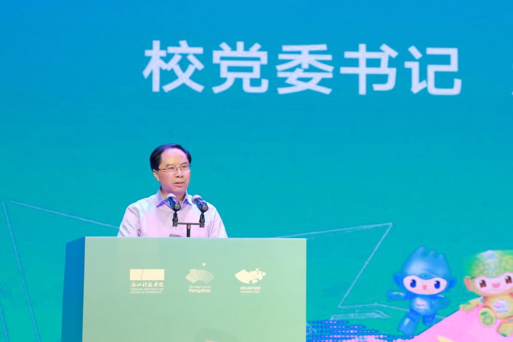 赵东福在致辞中指出,杭州亚运会举国关注、举世瞩目,是“国之大事”“省之要事”。做好此次亚运志愿服务工作既是一次向亚洲向世界展现浙科青年时代风采的重要机会,也是深化申搏育人成效的具体检验。他希望志愿者们,提高政治站位,切实增强服务保障的责任感、使命感,厚植家国情怀,展现朝气锐气,激发“强国有我”的青春激情,全心高效地投入亚运志愿服务工作,上好亚运这一堂生动的“大思政课”。勇于争创一流,敬业奉献,做好中外文明互鉴的使者,讲好中国故事,在志愿服务中历练本领,收获友谊,向全世界展现可信、可爱、可敬的中国形象,彰显中国青年形象。强化安全意识,遵守工作纪律,严格遵守岗位规范和工作纪律,筑牢安全防线,让亚运志愿服务成为大学生活中一段值得永远回忆的美好经历。