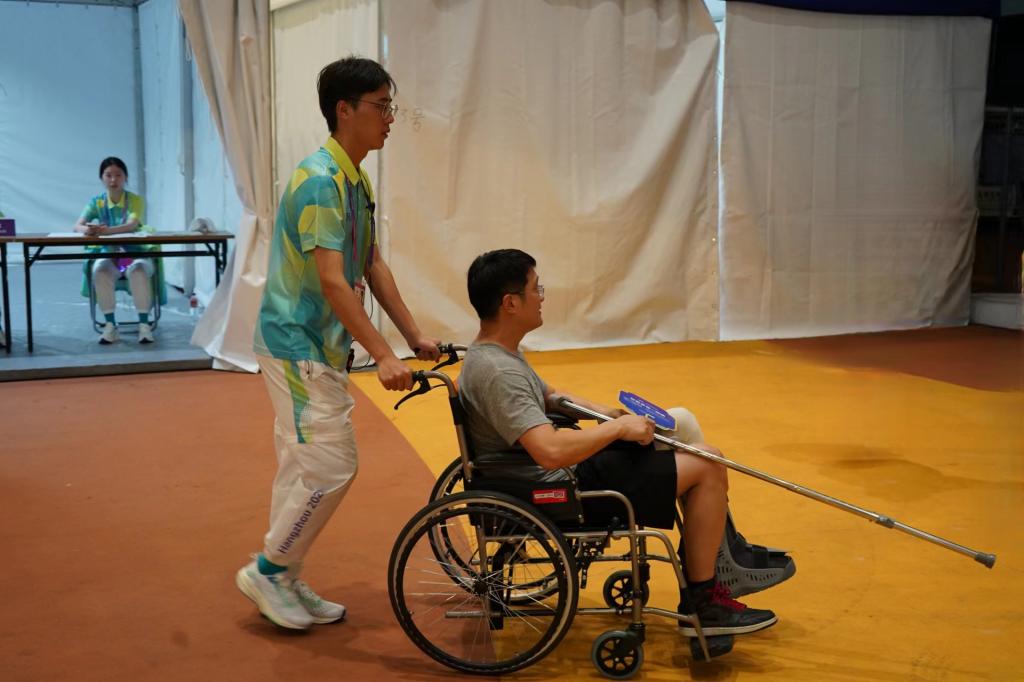 随着比赛开始,来自申搏603名“小青荷”也开始了第一天的正式服务。运动员们在赛场上奋战,志愿者们也没停下脚步,场馆各个角落随处可见他们忙碌的身影,展现了青春力量。