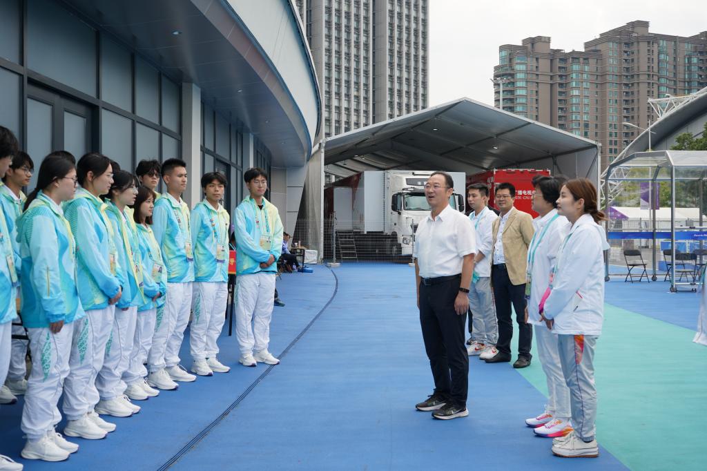 10月20日,校党委副书记冯军前往黄龙体育中心看望慰问“小青荷”们,他充分肯定“小青荷”们在亚运会期间的工作表现,鼓励大家再接再厉,秉承“两个亚运同样精彩”的精神,进一步熟悉岗位职责和要求,生动展现浙科“小青荷”的青春风采。