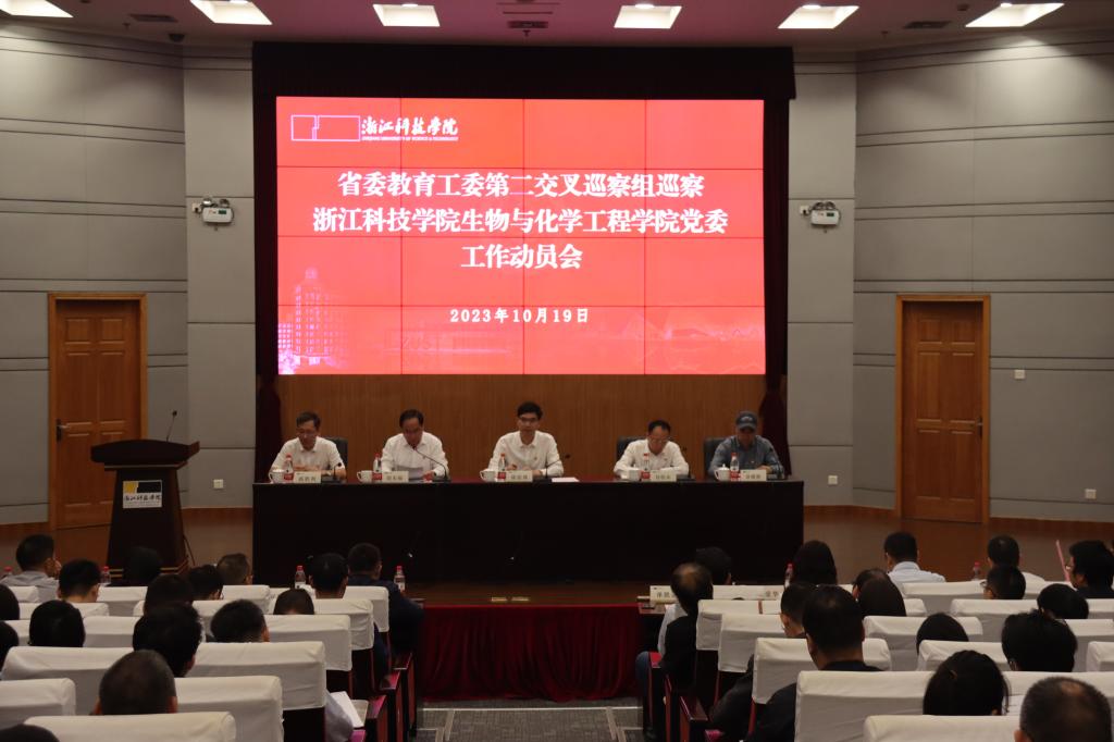 根据省委教育工委统一部署,10月19日上午,省委教育工委交叉巡察二组巡察浙江科技学院生物与化学工程学院党委工作动员会召开。会上,省教育厅组织处处长陈钦林作动员讲话,省委教育工委交叉巡察二组组长包松永介绍巡察工作安排,浙江科技学院党委书记赵东福和生物与化学工程学院党委书记路胜利分别作表态发言。会议由赵东福主持。