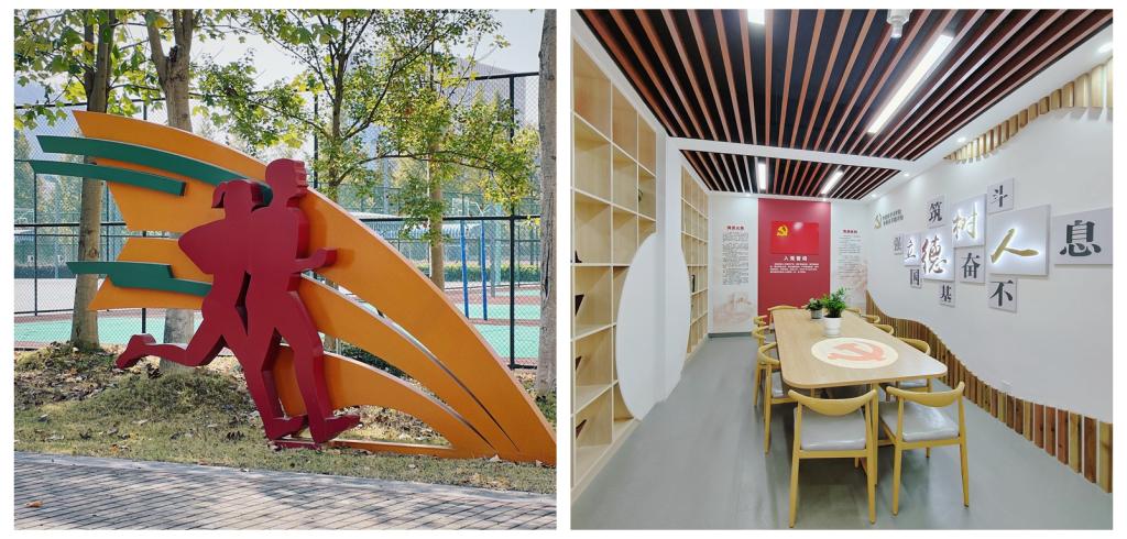安吉校区在校园内增设雕塑和文化小品,丰富校区景观文化建设。对劲竹书院、新竹书院、雅竹书院进行公共空间改造提升,进一步盘活书院空间活力,彰显书院特色文化,促进书院内涵与硬件建设同推进、双提升。