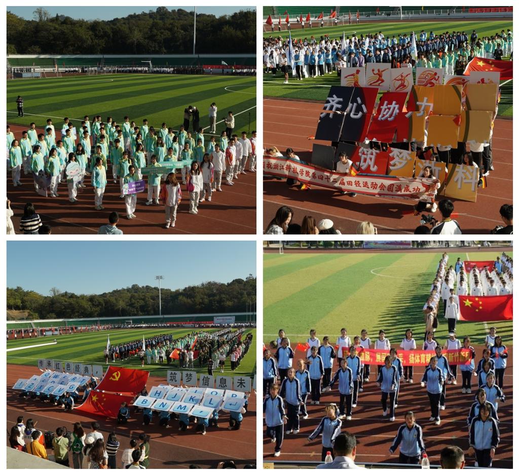 11月2日至3日,运动会田径比赛在两校区同时举行,教工组举办第10届趣味运动会。校党政领导班子成员分别在两校区出席开闭幕式。开幕式上,国旗方阵、小青荷志愿者方阵等来自不同学院和单位的方阵,各出新意、各展风采,用响亮的口号与精心设计的表演诉说着对这场体育盛会的期待与热爱。