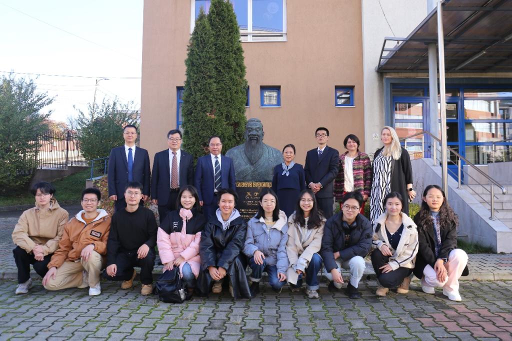 在罗马尼亚期间,代表团一行访问克卢日巴比什-博雅依大学。赵东福与该校校长丹尼尔·大卫教授(Prof. Daniel David)深入交流,共同签署博士联合培养协议和相关科研合作协议。访问期间,代表团还考察两校合作举办的孔子学院,并与两校联合培养项目的博士生、硕士生和申搏交换生座谈。