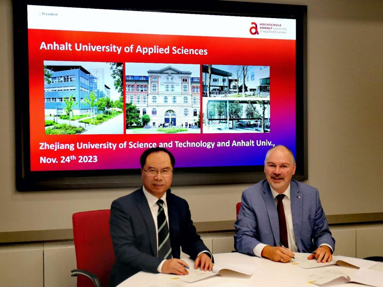 安哈尔特应用科学大学校长约克·巴格丹教授(Prof. Jörg Bagdahn)热情接待代表团一行。赵东福代表学校与巴格丹校长签署两校间校际合作协议,同时就双方在数字媒体专业开展人才联合培养项目达成共识。双方还就中德两国应用科学大学联盟的交流与合作事宜进行探讨,初步达成合作意向,并商讨下一步工作举措。