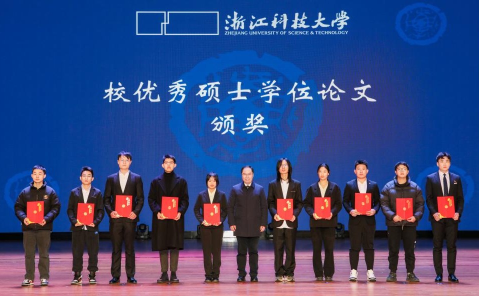 赵东福为首批获校级优秀硕士论文的学生颁发荣誉证书。据悉,2023年申搏出台相关政策,经个人申请、二级学院学位评定分委员会评选、学校审定,共有19名同学的硕士学位论文被评为2023年校级优秀硕士学位论文。
