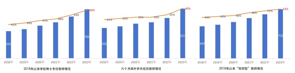 学校畅通各类人才发展通道,激励广大教师立足本职,潜心教书育人。第六轮岗位聘任修订岗位设置与聘任办法,科学核定编制和岗位,健全分类管理和考核办法,实现“国聘、校聘”两聘合一,教职工岗位意识、竞争意识显著增强;完善绩效工资划拨与分配办法,着力构建适应学校发展需要、体现岗位绩效和分类管理的绩效工资分配体系;深化专业技术职务评聘制度改革,坚持思想政治素质和师德师风第一标准,建立业绩赋分制,制订优秀人才职称“直通车”制度,强化高水平教学科研成果的激励和应用。教师队伍结构持续优化,教师队伍能力水平不断提升,初步实现“扩规模、调结构、提质量”目标。专任教师在数量、国际化水平、产学研用能力上均有明显提升,为学校高水平大学建设提供强有力的保障和支持。