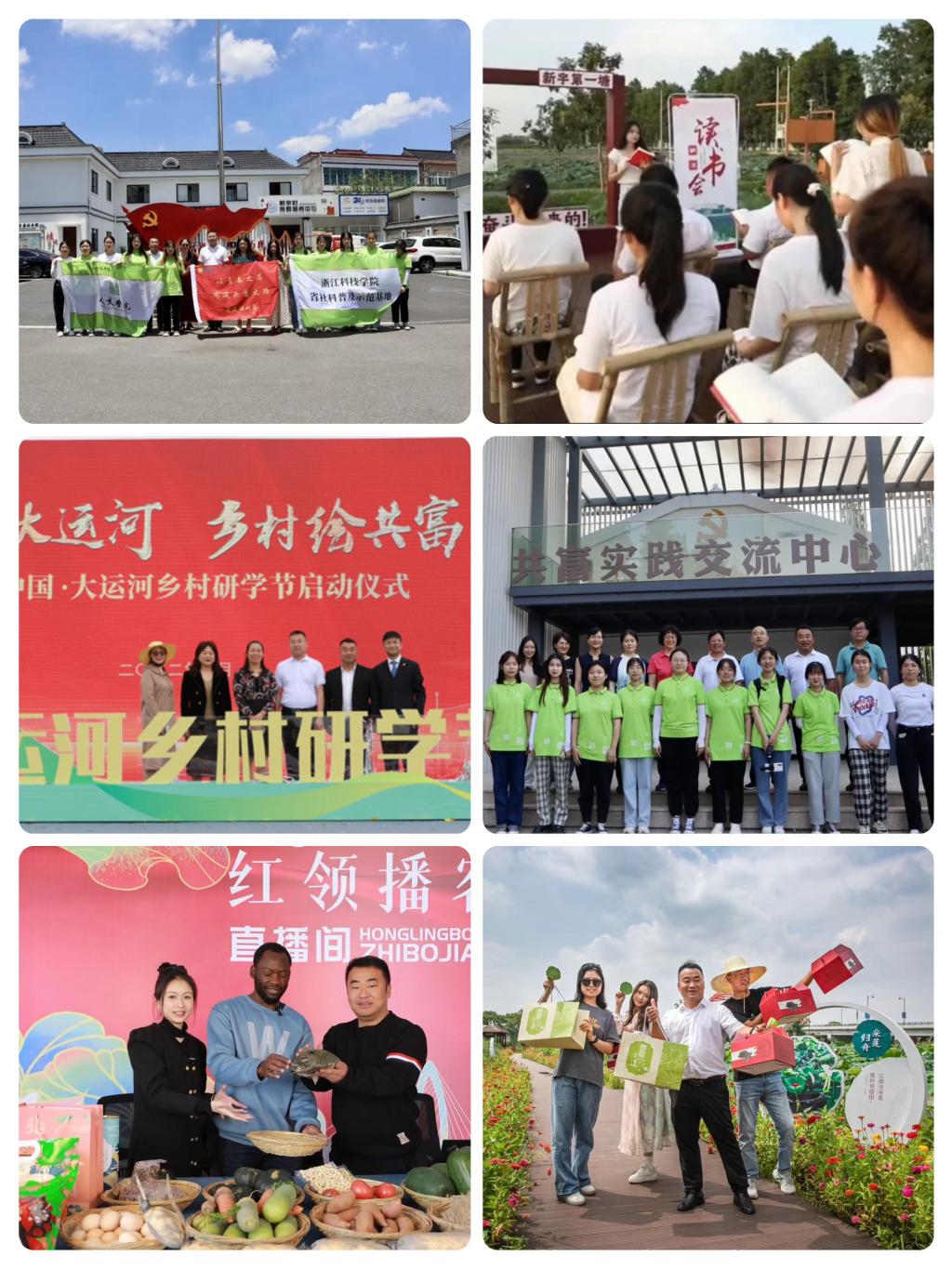 自2021年与临平区新宇村开展党建联建以来,学院连续4年派出师生百余名奔赴新宇村参加新农村建设,我院师生在农文旅研学课程开发、大运河世界文化遗产、乡村非遗文化保护和传承、农副产品直播销售、村庄形象打造与推广方面表现亮眼,为乡村振兴注入新活力,其中“青春心连新,筑梦共富宇”实践团入选2023年全国学生“三下乡”社会实践活动全国示范团名单,《一村一模式的“新宇”蝶变》等微党课被推送至学习强国等平台,阅读量3W+。学生党员担任“乡村推荐官”并创建“红领创客”助农直播间,先进事迹获得新华社、人民日报、中国青年网等知名媒体的49次宣传报道,点击量达100w+。