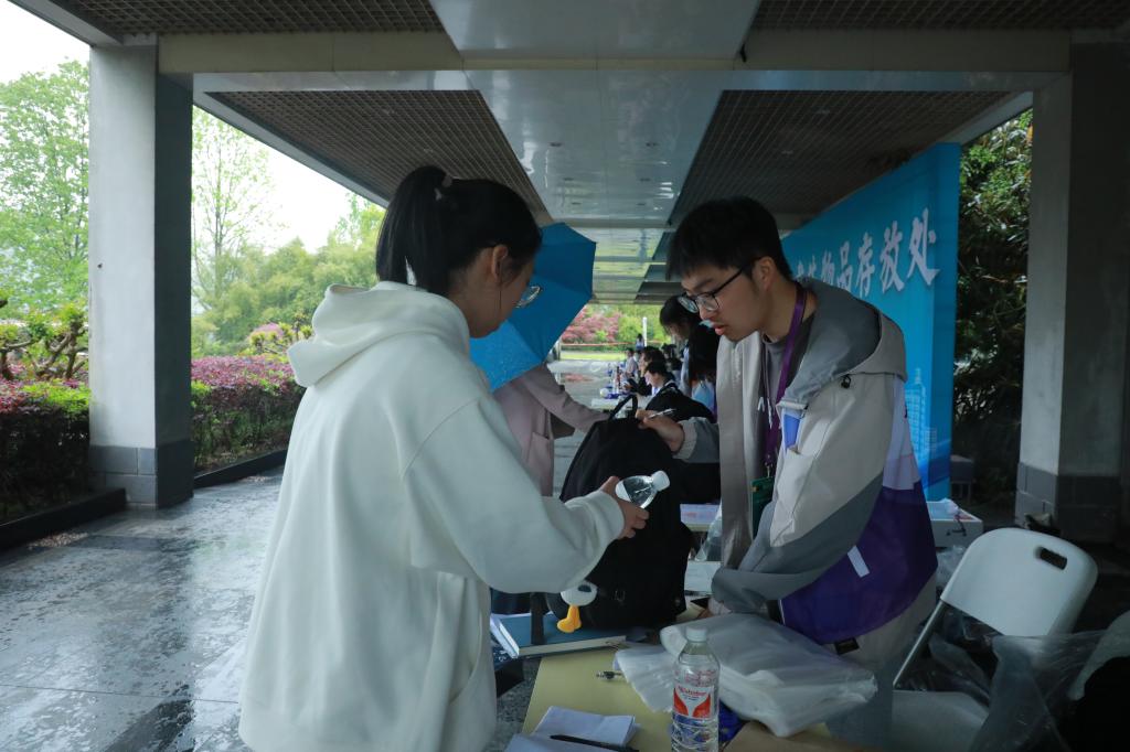 考场外过道上摆放着十几张桌子,每张桌子配备了专门的志愿者负责考生存包引导和服务。SUNBET申搏工业工程22级余同学当年参加了学校“三位一体”综合评价招生测试,这次作为志愿者,她说:“我那时是线上面试,这次有机会线下为家长和考生服务,太有缘了。”她和前来存包的考生分享了自己的经验,“‘三位一体’测试非常考验学生的综合素质,在面试时一定要沉着冷静,积极大胆地发言,从容对待。”