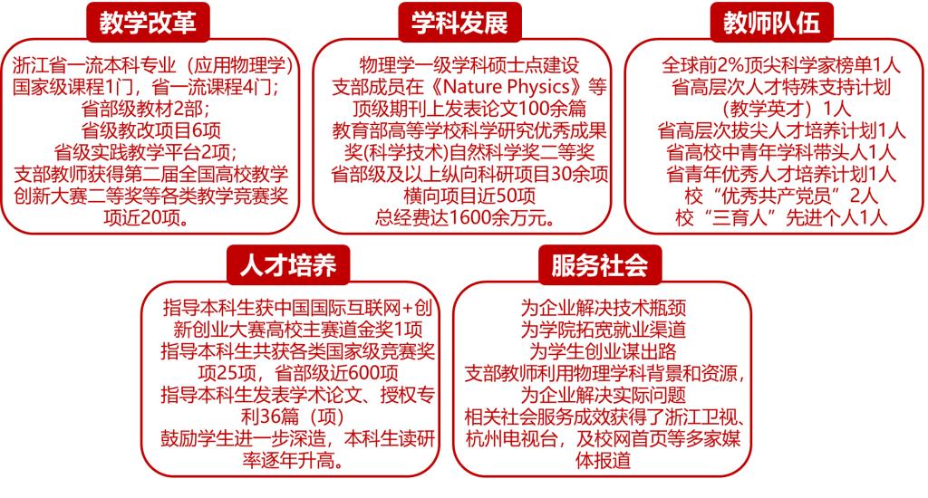 近年来,应用物理系党支部在推动教学改革、学科发展、人才培养、社会服务等方面取得了明显成效: