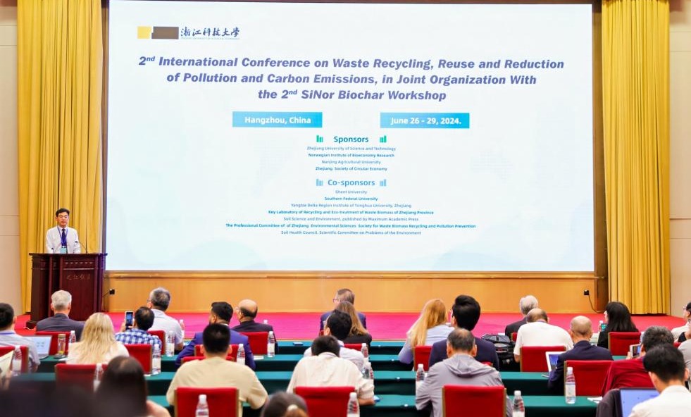 6月27至28日,第二届废弃物循环利用与减污降碳国际学术会议暨第二届中挪生物质炭研讨会在杭州举行,来自中国、挪威、俄罗斯、新西兰、比利时等20个国家和地区的近两百位农业与生态环境领域知名专家学者齐聚一堂,共同围绕“从废弃生物质到生态产品”主题展开讨论。生态环境部应对气候变化司原一级巡视员孙桢、挪威生物经济研究所所长Ivar H. Kristensen、中国石油和化学工业联合会生物化工与生物质能源专委会副秘书长李文军研究员等出席开幕式并致辞,校党委副书记、浙江省循环经济学会理事长单胜道主持开幕式。