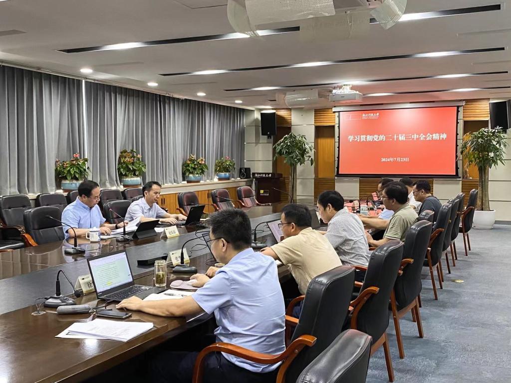 7月23日,学校召开党委会,深入学习领会党的二十届三中全会精神,并就学校贯彻落实全会精神作部署。党委书记赵东福主持会议。校长陈建孟等校党委班子成员参加会议。