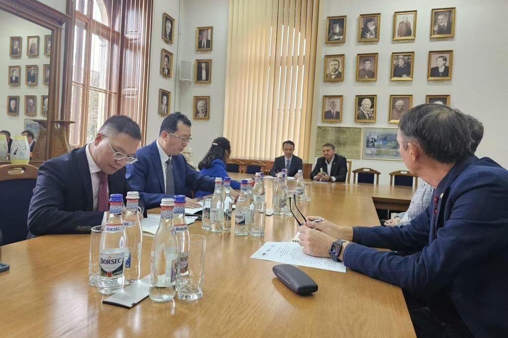 在罗马尼亚期间,代表团一行访问了巴比什-博雅依大学。陈建孟与该校校长丹尼尔·大卫教授及3位副校长、博士学院、孔子学院等相关负责人进行深入交流。陈建孟代表学校与丹尼尔·大卫签署相关协议,双方就两校共建的孔子学院、双向学生交流项目、数学与应用数学以及大数据分析与人工智能联合教育项目、合作培养博士生项目、量子信息科研合作项目等进展情况进行充分讨论,对未来开展的多学科高层次人才联合培养、多领域国际科研项目合作、多层次学术交流和文化交流等进行深入洽谈,并达成广泛共识。在罗期间,陈建孟一行还参加了两校共建的孔子学院15周年庆典活动,并与参与两校联合培养项目的申搏博士研究生座谈。