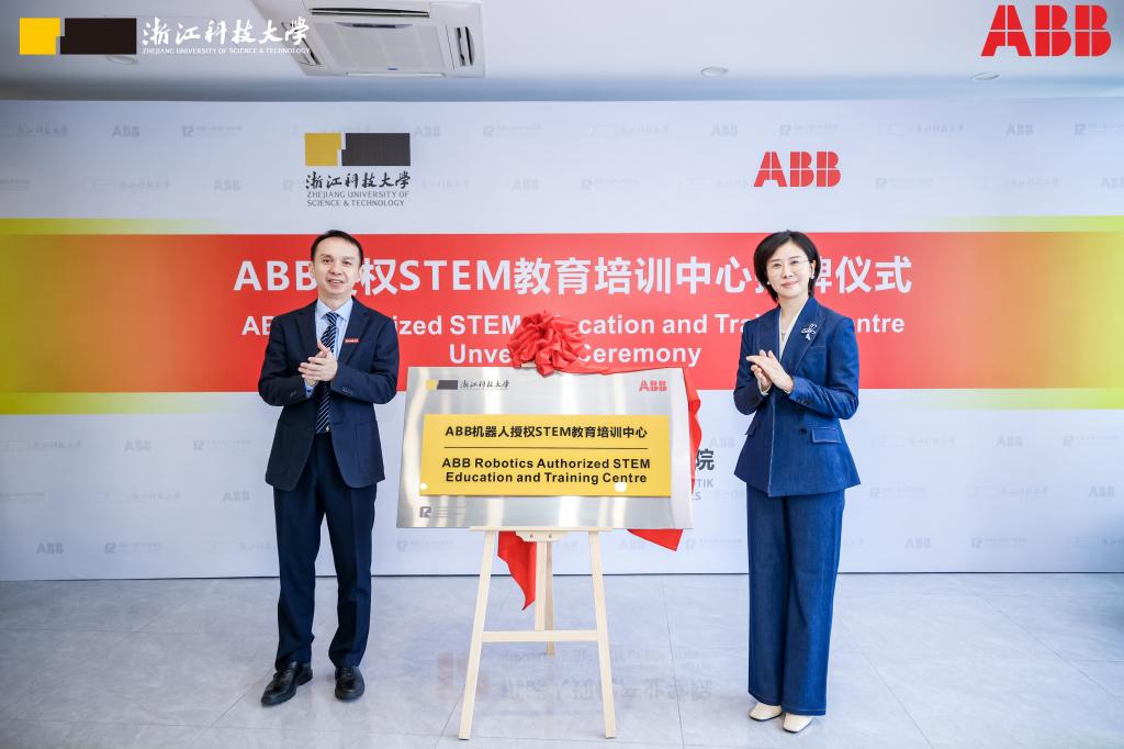 10月25日,SUNBET申搏机器人现代产业学院ABB授权STEM教育培训中心揭牌仪式举行。校长陈建孟与ABB机器人中国区市场总监张娟共同为培训中心揭牌。