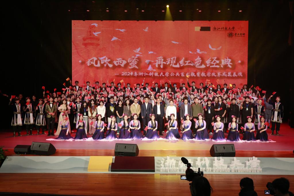 据悉,本次展演是艺术教育中心积极探索教学改革研究,将校精品课程《红色经典舞台艺术赏析》从教室移至舞台,把课本上的文字变成生动的舞台艺术形象,创新性地探索美育教学中理论与实践、赏析与表演相结合的新型教学模式,在潜移默化中培根铸魂、启智润心。