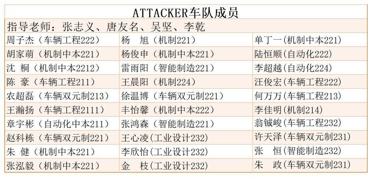 中国大学生方程式系列赛事由中国汽车工程学会于2010年牵头创办,至今已连续举办十五届,是国内最高等级、参与高校人数最多、影响力最大的汽车工程类赛事。ATTACKER方程式赛车队自2013年成立以来,已研制了近15辆赛车,累计获得20个国家级奖项。机能学院通过竞赛鼓励学生主动学习和深入研究,培养学生运用所学知识解决实际问题,培养学生的创新意识和实践能力。目前车队已建设成为以车辆工程专业为主体,兼具理、工、经、管、艺等相关专业本科生和研究生共同参与创新实践的多学科交叉融合平台,培养了一大批具有新时代工匠精神和创新创业能力的高层次应用型专业技术人才。(机能学院)