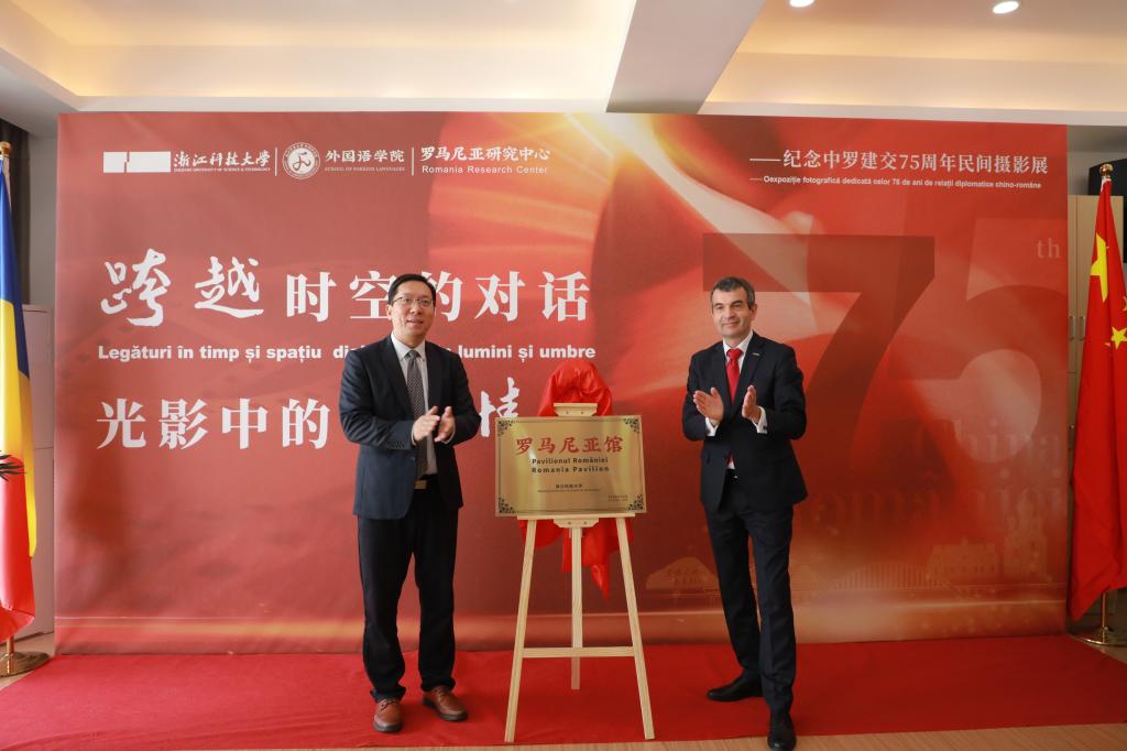 西米纳博士一行参观了申搏罗马尼亚研究中心新建成的罗马尼亚馆,并与李其朋一起共同为申搏罗马尼亚馆进行揭牌。为纪念中罗建交75周年,罗马尼亚研究中心在罗马尼亚馆中布设了“跨越时空的对话:光影中的中罗情缘——纪念中罗建交75周年民间摄影展”。