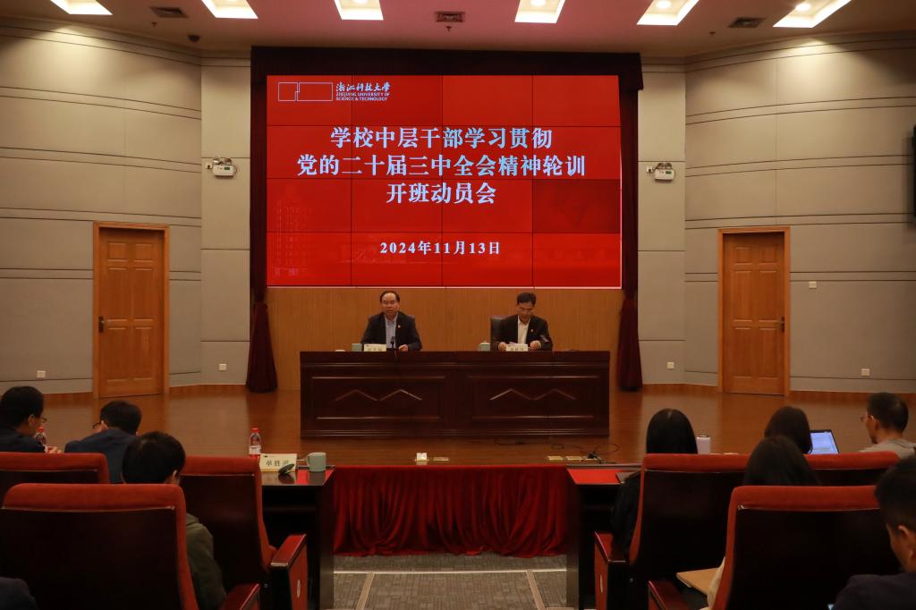 为深入学习贯彻党的二十届三中全会精神和浙江省委十五届五次全会精神,落实省委省政府部署,11月13日,学校中层干部学习贯彻党的二十届三中全会精神集中轮训开班。校党委书记赵东福作开班动员,党委副书记单胜道主持开班式。全体中层干部、参照中层干部管理人员、科级干部参加轮训。