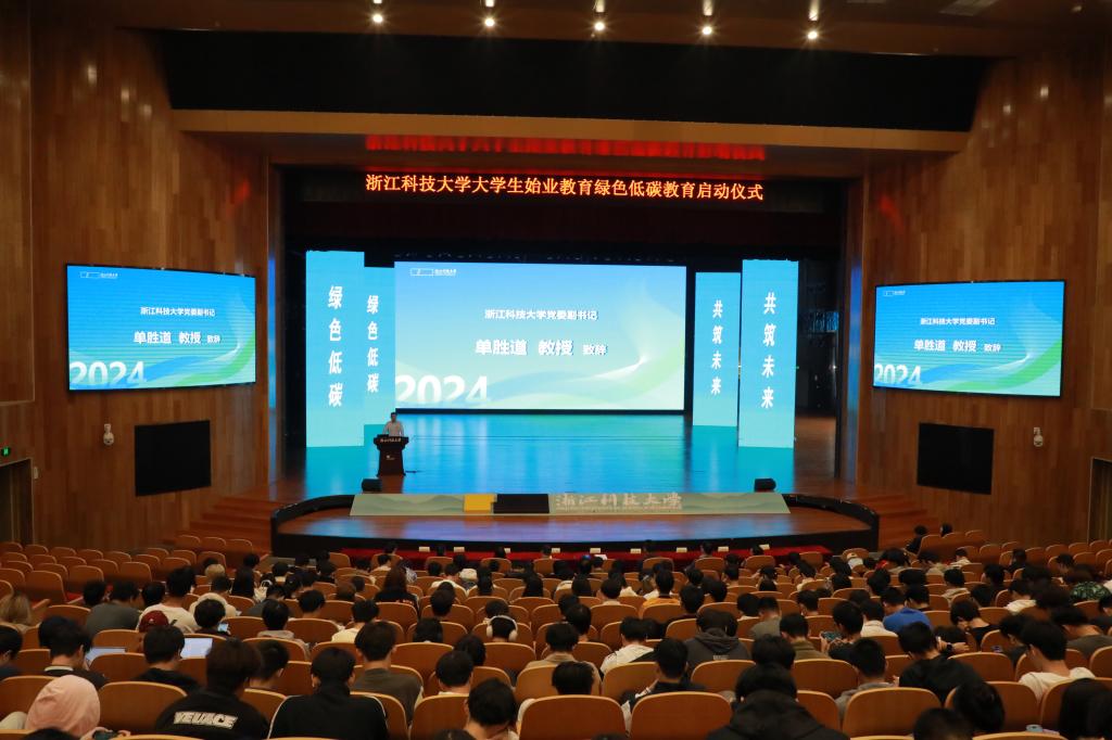 单胜道指出,将绿色低碳教育纳入新生始业教育是贯彻党的二十届三中全会精神,落实绿色低碳发展国民教育体系构建要求的生动实践,培养能适应并引领绿色低碳社会发展的新一代人才。他介绍,学校近年来高度重视绿色低碳教育,以“育低碳新人,创绿色校园”为主题,发挥安吉校区“两山”资源优势推动情景化教学,发挥“以赛促教”模式促进项目化育人,发挥“应用型”培养模式推进标准化育人,发挥学校“中德合作”办学优势推进国际化育人。他希望同学们用实际行动践行绿色低碳,争做绿色低碳理念的学习者、传播者、践行者。