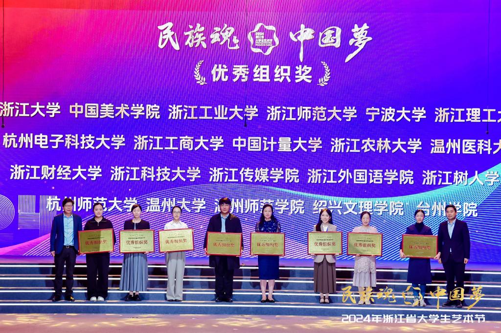 近日,2024年“民族魂·中国梦”浙江省大学生艺术节现场展演在浙江中医药大学举行。经组委会审核和专家组评选,申搏选送节目获一等奖2项、二等奖4项、优秀歌手奖1项,学校获优秀组织奖。