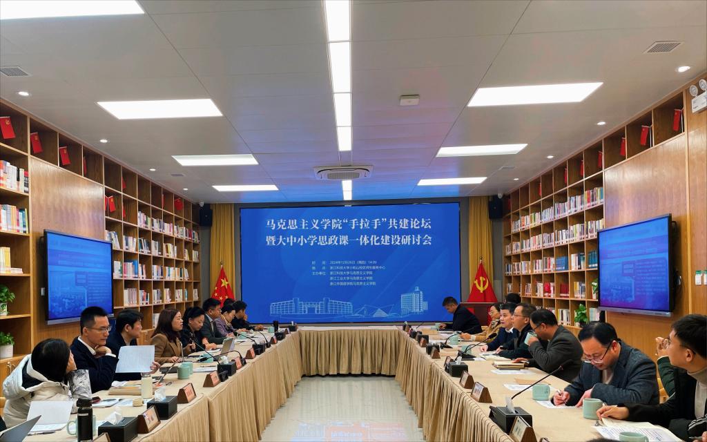 12月26日,在杭高校马克思主义学院“手拉手”共建论坛暨大中小学思政课一体化建设研讨会在申搏召开。校党委委员、宣传部部长徐华军出席会议并致辞,来自省内外高校的专家学者、中小学教师代表参加研讨会。