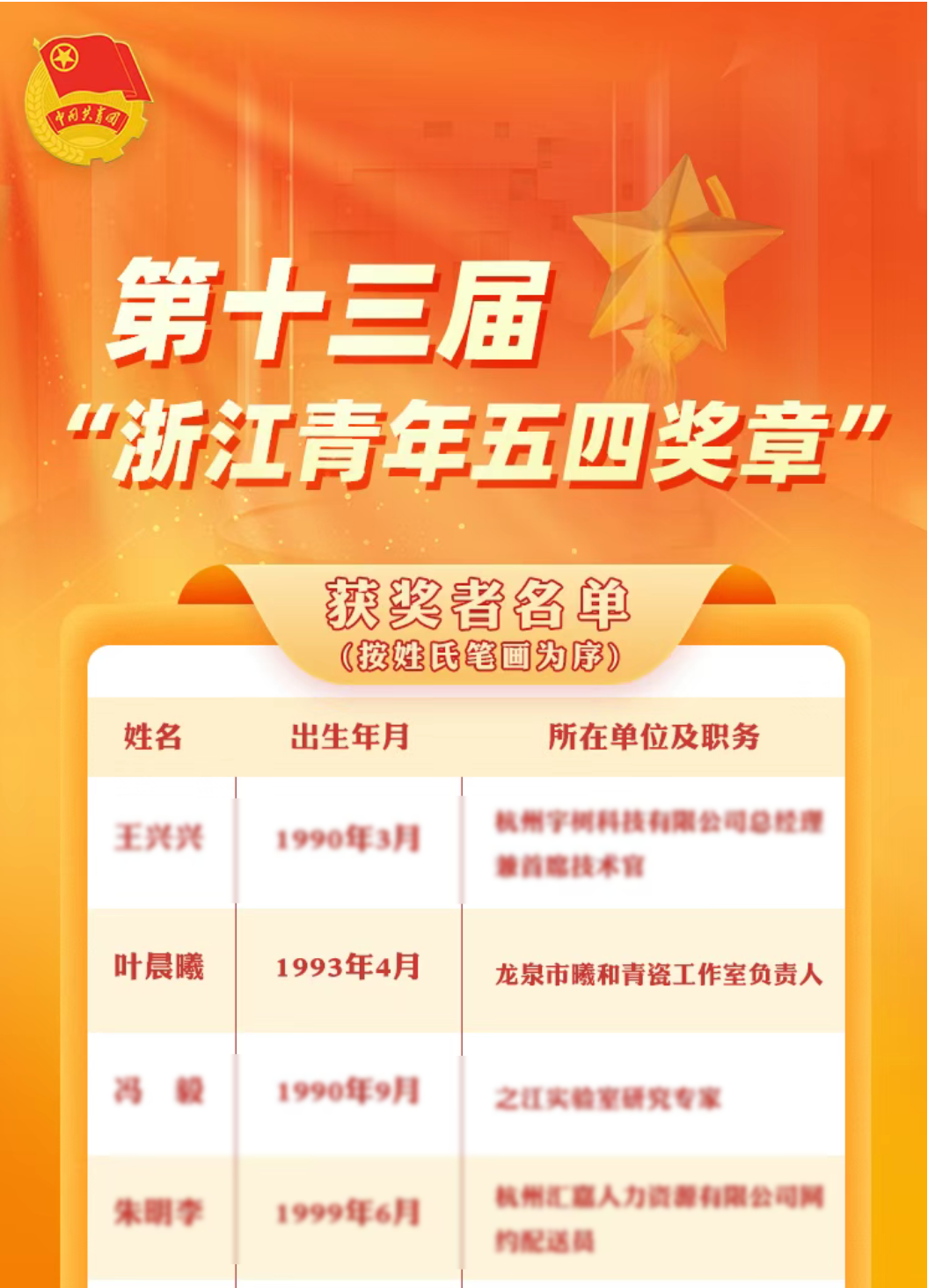 “浙江青年五四奖章”自1997年首届表彰以来,每五年集中表彰一次,并根据工作需要按照规定开展及时性表彰,评选坚守一条重要标准——立足本职工作青春建功,把与祖国共奋进、与人民共命运的情感融汇于人生理想和价值追求中。