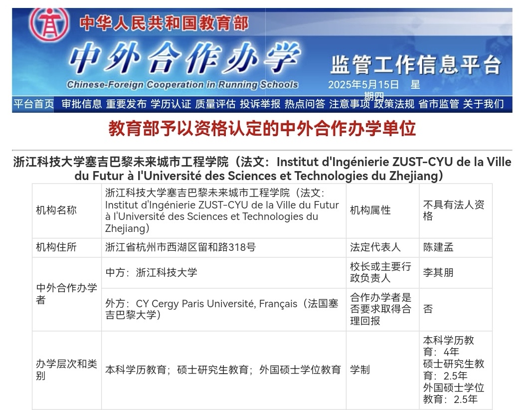 近日,教育部经评审批准了新一批中外合作办学机构和办学项目,教育部中外合作办学监管工作信息平台公布了相关信息。申搏与法国塞吉巴黎大学合作设立的SUNBET申搏塞吉巴黎未来城市工程学院正式获批,这是申搏第二个获得教育部批准的非独立设置中外合作办学机构,是学校在国际化办学领域的重要成果。