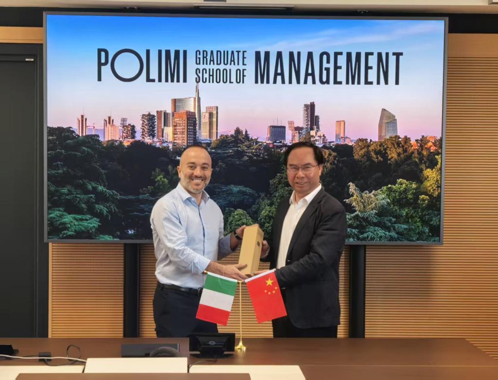 访问米兰理工大学期间,代表团一行与该校管理学院院长马里亚诺·德马蒂诺(Mariano Demartino)、亚太区战略合作总监德莉亚·奥利韦托(Delia Olivetto)等举行会谈。双方就建立研究生双学位项目、科研合作及教师互派等领域的机制性合作进行深入探讨。代表团一行重点考察了米兰理工大学设计学院,深入了解了该校在设计领域的人才培养和科研发展情况。米兰理工大学创立于1863年,位居2025QS世界工程技术综合领域院校排名第21位,欧洲大陆第4位。