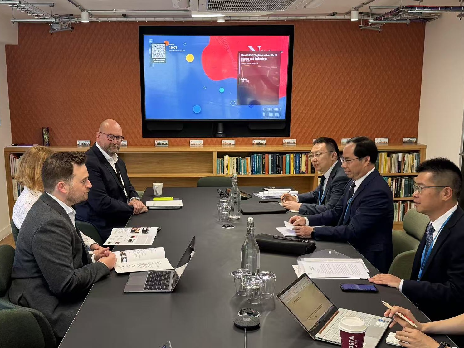 在美国东北大学伦敦校区,赵东福一行与该校执行校长兼教务长斯科特·怀德曼(Scott Wildman)、研究生院院长希安·乔尔-埃德加( Sian Joel-Edgar)等举行会谈。双方分别介绍了学校发展情况,共同表示要建立校际合作关系,开展教师交流、国际科研项目申报、硕士研究生联合培养,并加强学生双向交流。东北大学成立于1898年,是一所顶尖的私立研究型大学,位居2024年 U.S. News 美国最佳大学排名第53名,伦敦校区是其全球14个校区之一。