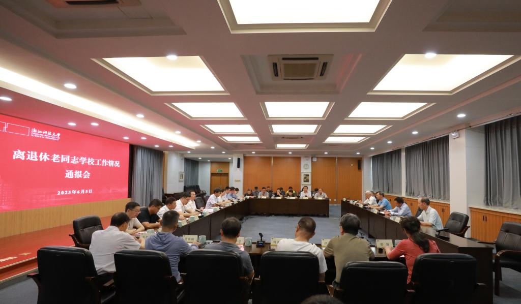 6月5日上午,学校召开2025年度离退休老同志校情通报会。校长陈建孟通报2024年学校事业发展情况和2025年重点工作。校党委副书记单胜道主持会议。退休校领导,离退休党委班子和所属支部书记,退休中层干部、高级职称人员、民主党派人士、教职工代表,相关职能部门负责人参加会议。