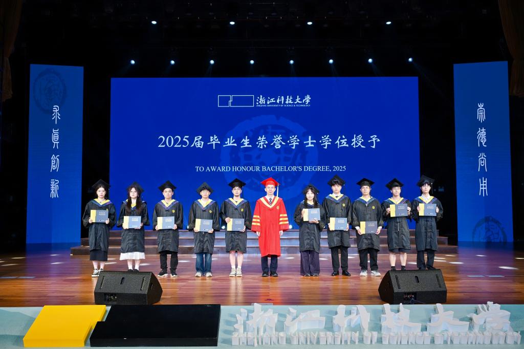 校党委书记赵东福、校长陈建孟共同为省级、校级优秀毕业生代表颁发荣誉证书,为毕业生代表颁发校训纪念章,为获得2025年卓越学子奖学金获奖学生颁奖。校党政班子成员为毕业生代表颁发学术诚信荣誉证书,为校友联络员代表颁发聘书。