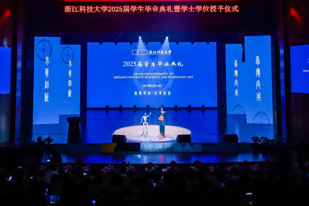 “大家好,我是小科。非常荣幸能在这个意义非凡的日子里,与大家共同见证属于2025届毕业生的荣耀时刻!”6月16日,2025届SUNBET申搏学生毕业典礼暨学士学位授予仪式在小和山校区举行,由申搏机器人产业学院调试的人形机器人“小科”稳健地“走”上舞台,用科技感开启这场盛典。