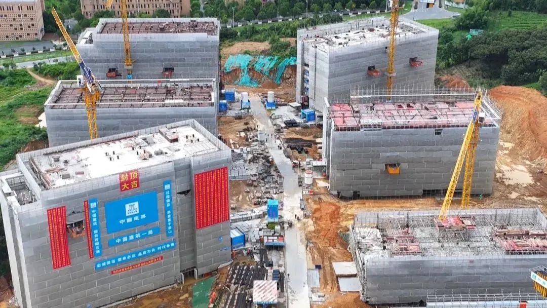 据悉,安吉校区二期北区块项目在施工方精心施工下,近日顺利实现了六栋宿舍楼主体结顶,规划蓝图正加速落地。北区块项目主要涵盖住宿公寓、食堂等配套设施,投资金额约6亿,提供床位6680个。该区块自今年正式开工以来,便明确各阶段目标,争分夺秒地推进施工进度。暑期,仍有超700名工人分散在项目各处,同步开展主体结构、机电预埋、二次结构、砌筑等内容的施工,现场一片忙碌景象,还有剩余两栋宿舍楼和一栋食堂将于9月份结顶。随着大部分主体结构进入封顶阶段,施工重点已逐步转向屋面施工、室内装饰装修、外墙施工等工作,项目计划于明年6月份竣工并交付使用。