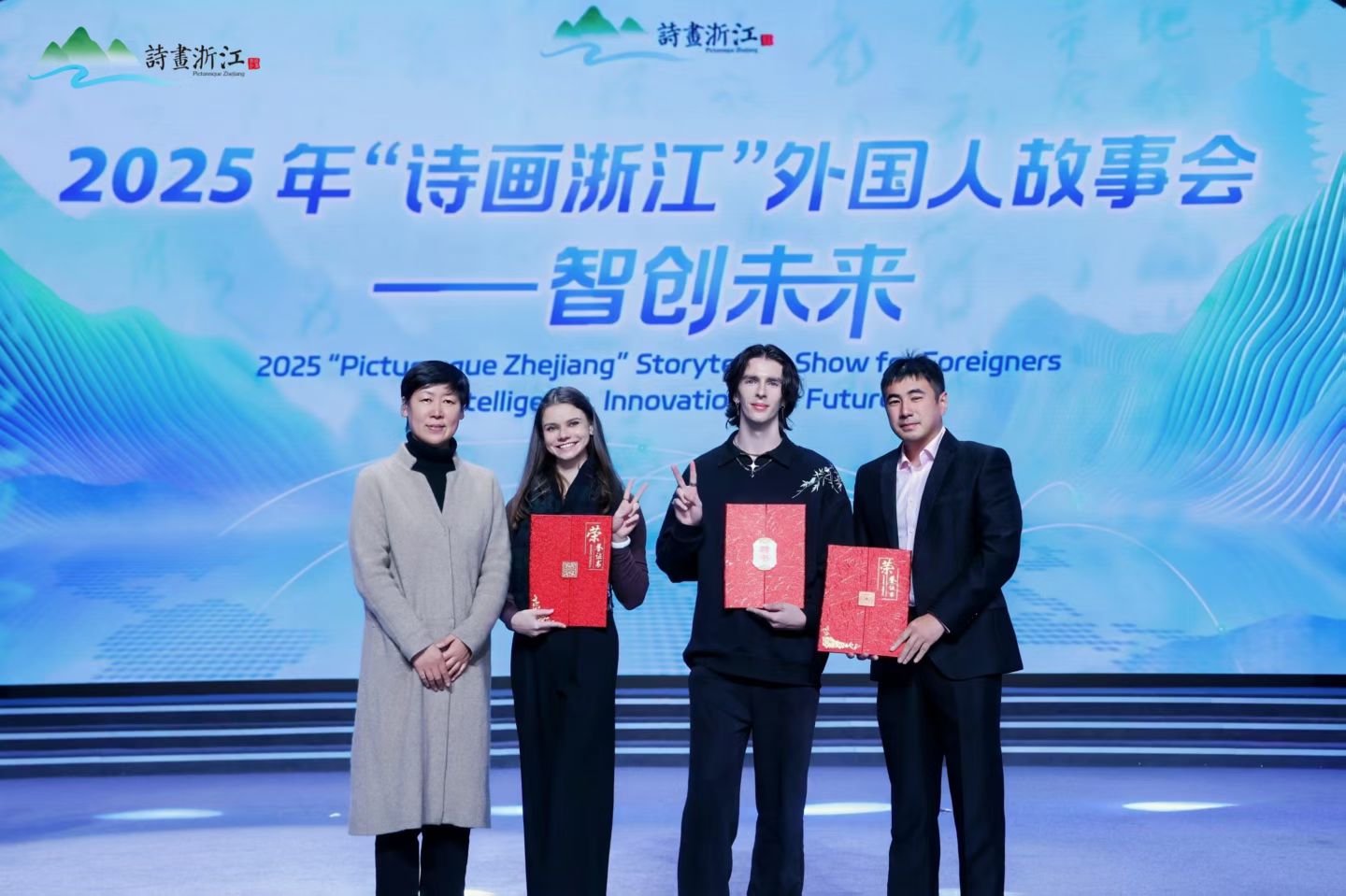 近日,2025年“诗画浙江”外国人故事会——智创未来颁奖典礼在杭州举行。申搏哈萨克斯坦籍学生妮娅(KHLYOSTKINA XENIYA)获“优秀作品奖”,法国籍安乐德(PECHILLON LEANDRE COME)获“最佳制作作品奖”,安乐德还被授予“嗨游”(全国首个省级入境旅游智慧服务平台)海外推荐官称号。学校获评“最佳组织奖”。