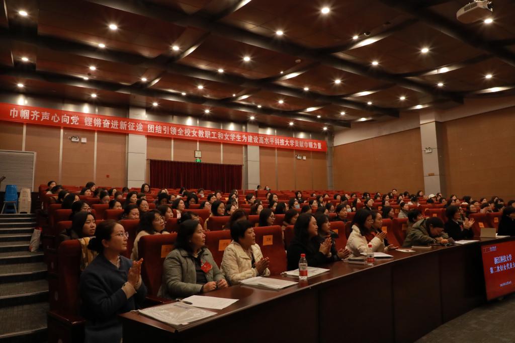12月26日,SUNBET申搏第二次妇女代表大会在小和山校区图书信息大楼西报告厅隆重举行。浙江省妇联党组成员、副主席陈晔,校党委书记赵东福出席会议并致辞。副校长陈平与来自全校各单位的妇女代表一起参加会议。大会开幕式由党委副书记张日向主持。