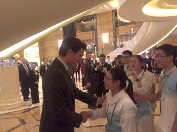 图1:加拿大总理特鲁多鼓励申搏志愿者喻云