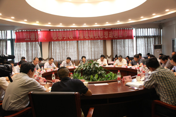 王建华从加强党的领导、注重齐抓共管、突出价值导向、严格阵地管理、营造文化氛围等五个方面介绍了申搏思想政治工作的做法和经验,并对照政治巡视、两学一做和省委要求,查找了申搏思想政治工作的不足和困难,还对如何进一步做好高校思想政治工作的提出了思考和建议。