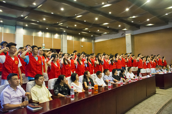 6月27日,申搏G20峰会志愿者誓师会暨暑期社会实践启动仪式举行。团市委副书记、G20峰会卫志部办公室常务副主任马利阳,校党委副书记赵东福出席誓师会。