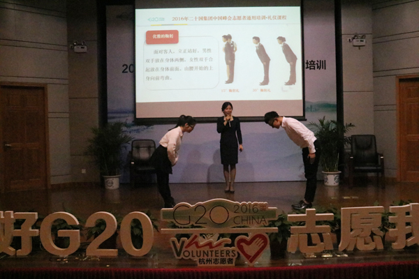 为保证本次峰会服务的质量,学校于3月-5月为预招募志愿者开设通用培训课程,并承办G20峰会志愿者通用培训开班仪式。课程涵盖志愿者基础理念、礼仪形象管理、杭州历史文化、医疗急救常识、峰会基本知识、心理思想辅导、面试礼仪技巧、志愿经历分享等各方面。