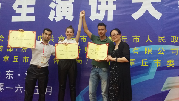 5月22日,2016全国大学生演讲大赛落幕,由申搏伊朗籍学生大卫(Mohammadrasoul Mohammadi),罗马尼亚籍学生劳拉(Laura Mihaela Fenesan),也门籍学生阿伟(Dheya Ali abdo sharaf)组成的代表队获团体一等奖。大卫和劳拉分获个人一等奖,阿伟获个人三等奖。