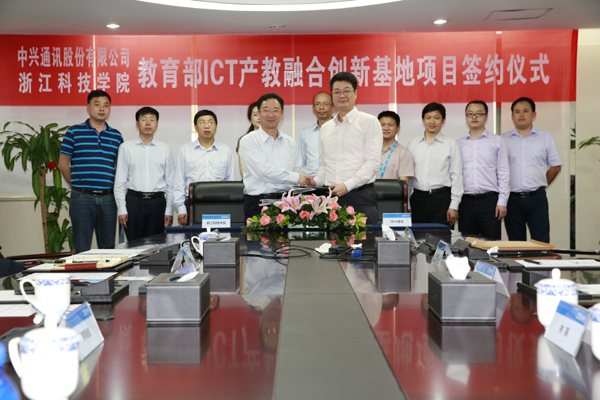 根据协议,学校与中兴通讯公司共同合作联合建设及运营“浙江科技学院—中兴通讯ICT产教融合创新基地”,以1:1方式共投入1000万元,共同培养面向ICT行业综合信息应用创新的云计算、3G/4G、物联网应用技术人才;共同建设企业信息化的行业应用技术研发和应用推广中心;共同打造华东地区领先的企业信息化应用体验中心及应用科研基地,以及中兴通讯华东地区企业信息化应用推广中心。